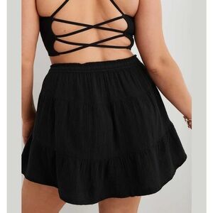 Aerie Pool To Party Cover Up Black Gauze Mini Front Tie Skirt Women’s Size XL