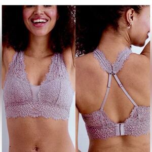 Aerie Purple Lace Bralette Convertible Adjustable Strap Mesh Insert Women Large