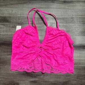 Aerie Racerback Strap Lace Knit Bralette Hot Pink NWT Women’s Size XL