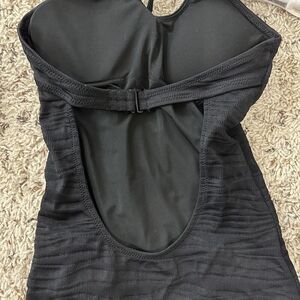 Elevate your swimwear game with this stylish Aerie Real Good One Piece swimsuit. The textured/ribbed pattern adds a touch of uniqueness to the classic black color and the halter tie neck strap provides a comfortable fit. The swimsuit features a shelf bra and is made with stretchy material that ensures a flattering fit. Perfect for beach vacations or pool parties, this swimsuit offers full coverage and is designed for women in size 2XS. It is recommended to hand wash only for optimal care. The theme of this swimsuit is centered around beach, vacation, pool, and swimwear. Don't miss out on this must-have item for your summer wardrobe.