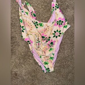 Aerie Real Good Paisley Scoop Neck Cheeky Swimsuit Size Medium
