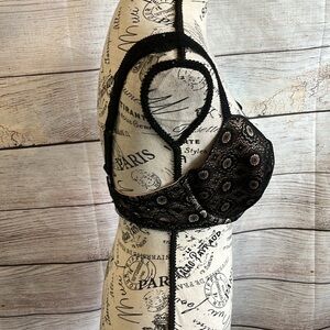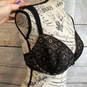 Aerie “Real Happy” Demi Bra Black Lace Underwire Lightly Lined Size 34DD