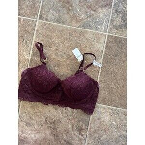 Aerie Real Power Paisley Lace Balconette Bra Royal Berry Size 34C