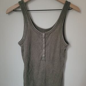 Aerie Real Soft Ribbed Snap Front Tank in Brown Green Size Medium
