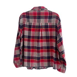 Aerie| Red Blue Plaid Flannel Shirt Cotton Blend Button Down | Large