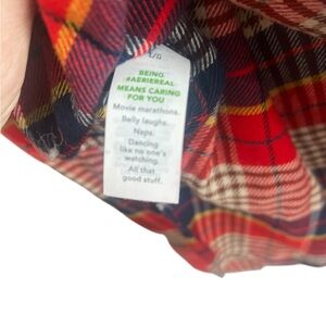 Aerie red and blue plaid flannel button-down shirt