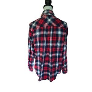 Gently Used in excellent condition Aerie Long Sleeve Flannel. Blue, White and Red Plaid. 55% Cotton, 45% Viscose.
