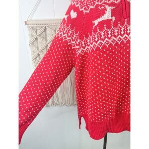 Aerie Red Christmas Sweater Size XL 1/4 Zip Holiday Fair Isle Reindeer