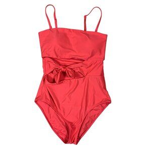 Aerie Red One Piece Swimsuit Medium Bow Front Adjustable Straps Full Coverage