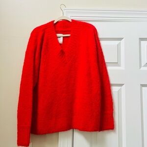 Embrace the cozy charm of this Aerie V-neck sweater, crafted in a vibrant red hue. Its classic V-neck design and soft knit material make it a versatile addition to your wardrobe. Perfect for layering or wearing on its own, this sweater combines comfort with a touch of elegance. New and never worn!