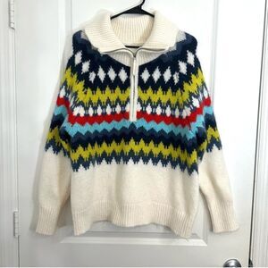 Aerie Relaxed Fair Isle Chevron Aztec Quarter Zip Turtleneck Chunky Sweater S
