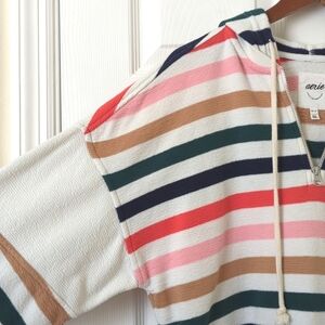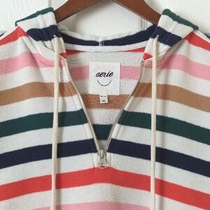 Aerie Restart Colorful Striped Quarter Zip Cropped Pullover Hoodie Sweatshirt XS