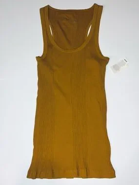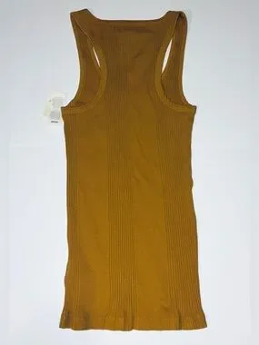 Aerie Ribbed racerback tank top Scooped neckline Fitted but stretchy Mustard color