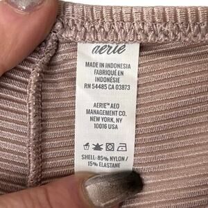 Upgrade your swimwear with this flattering ribbed bikini bottom from Aerie. Designed in a neutral cocoa cream shade with a subtle sheen, this cheeky tie-side cut highlights curves while staying adjustable and comfortable. Perfect for tanning, swimming, or pairing with your favorite bikini top for a chic, beach-ready look.