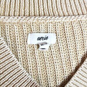 Aerie Ribbed Cotton Sweater Ivory Cream Cable Knit Size XS Neutral Minimalist