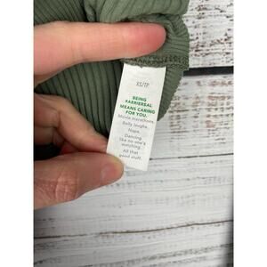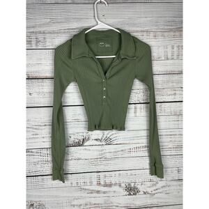 Aerie Ribbed Long Sleeve Collared Half Button XSmall Green 90s Crop Y2K Preppy