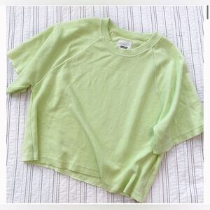Aerie Ribbed Short Sleeve Sweatshirt Ripe Honeydew Green