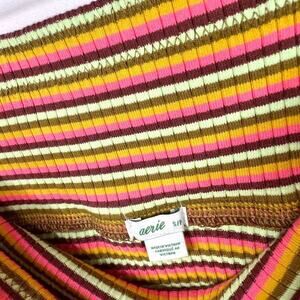 Aerie Ribbed Stripe Retro Color Midi Skirt Small