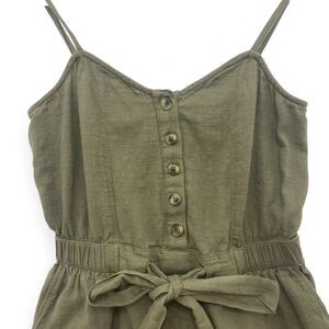 Aerie Romper XS Button Front Belted Olive Green Cotton Summer Casual