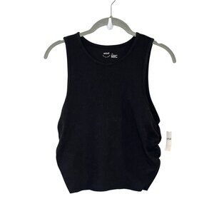 Aerie Rouchy Rib Tank Top Crop Stretchy Solid Black Size L NEW NWT