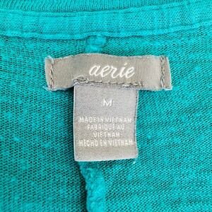 Aerie Round Neck Tissue Turquoise Cotton Long Sleeve Loose Fit Top Size Medium