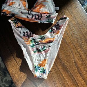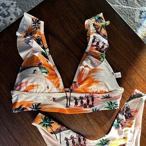 Aerie Ruffle seaside Town Print Bikini Top Large Bottom XL
