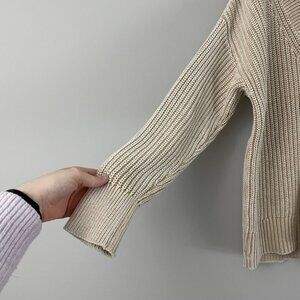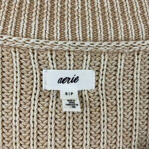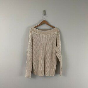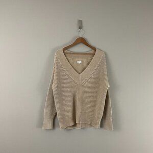 Aerie Sandalwood Rib Knit V Neck Slouchy Cotton Sweater Size Small