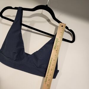 Aerie Scoop Bikini TOP V-neck Textured Waves Blue Swimming Top Swimsuit sz Large