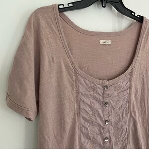 Light pink/blush/nude peplum top. Embroidery and buttons going down front. Scoop neck and short sleeves