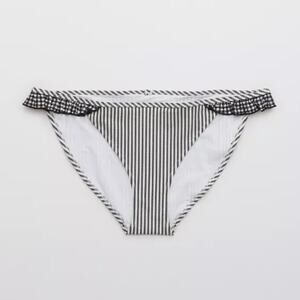 Aerie Seersucker Ruffle Bikini Bottom Striped with Gingham Ruffles Size L NWT