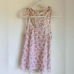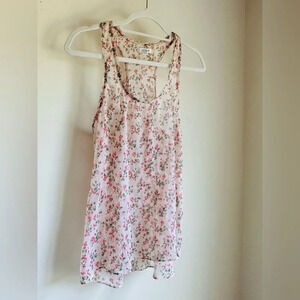 This Aerie tank top in size S features a delicate sheer fabric with a charming floral print. The racerback style and lightweight material make it perfect for layering or wearing on its own during warmer weather.