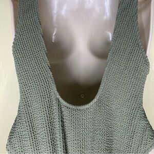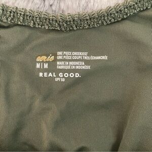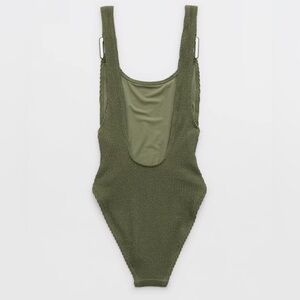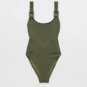 Aerie Shimmery Crinkle Birthday Scoop Cheekiest One Piece Swimsuit Green Size M