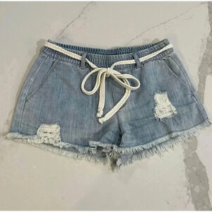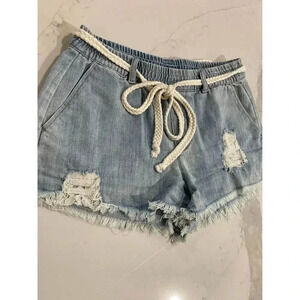 Aerie Shorts Women's Size XS Distressed Raw Hem Pull on Mini Light Wash Denim