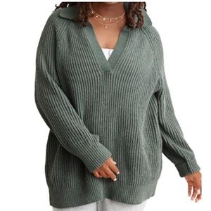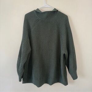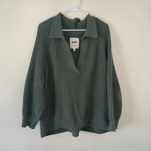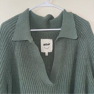 Aerie Size L Sugar Rush Chenille Sweater Polo Henley Neckline Green