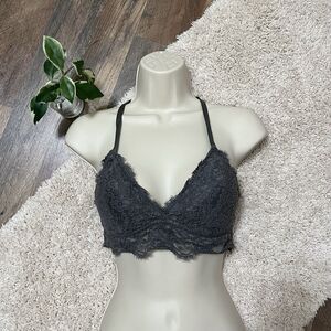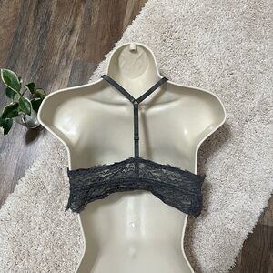 Aerie Size Large Gray V Neck Wireless Lightly Padded Halter Bralette