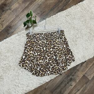 Aerie Size Large Leopard Print Ruffle Smocked Pull On Linen Blend Mini Skirt