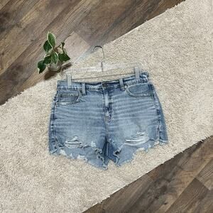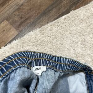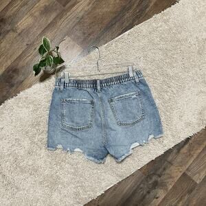 Aerie Size Medium Distressed Mid Rise Elastic Waist Denim Shorts