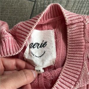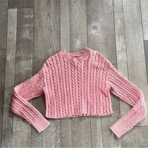 Aerie Size Medium Pink Cable Knit Cropped Sweater.