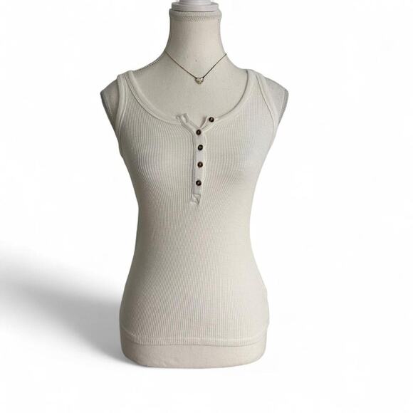 Aerie Size XS White Essentials Baisc Layering Henley Tank Top Fitted & True To Size