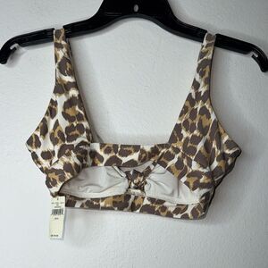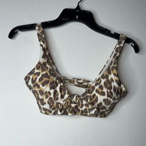 Aerie Small Leopard Print Wide Strap Scoop Neck Bikini Top Swimwear Size Small
