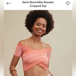 Aerie Small NWOT Reversible Off-Shoulder Cropped Blue Striped Sweater