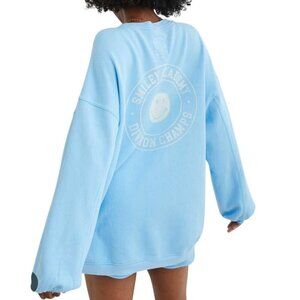 Aerie Smiley Real Crew Oversized Baby Blue Sweatshirt Trending Size XS