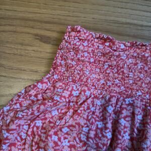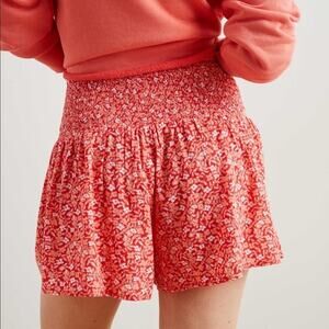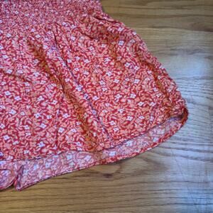 Aerie Smocked Ditsy Red Flowy Floral Shorts High-Waisted Size XL