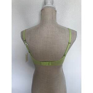 This lime green bra is comfortable and perfect for adding a pop of color. It is a mesh unlined material that is a balconette style. It has an underwire for extra support. The lime green color is a nice shade and not too bold. It has adjustable straps and a classic hook and eye closure. It has a comfortable stretch so if shapes to your body. New with tags.