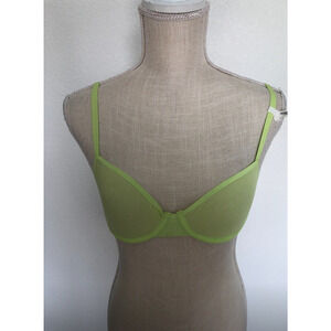 This lime green bra is comfortable and perfect for adding a pop of color. It is a mesh unlined material that is a balconette style. It has an underwire for extra support. The lime green color is a nice shade and not too bold. It has adjustable straps and a classic hook and eye closure. It has a comfortable stretch so if shapes to your body. New with tags.