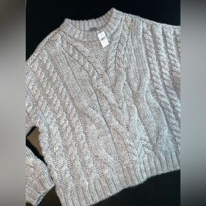Aerie Snowday Oversized Gray Chunky Cable Knit Boxy Sweater Size XS NWT