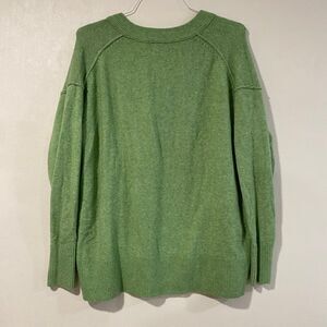 Soft and comfy Aerie V-neck sweater in a pretty green shade. Features a relaxed, slightly oversized fit, ribbed cuffs/hem, and perfect everyday cozy vibes. Great for layering and super flattering with jeans or leggings.