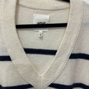 Soft and comfy v-neck navy stripe oversized sweater. Machine wash.
