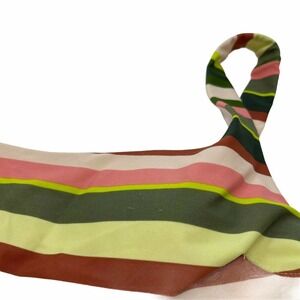 Aerie Striped Bikini Top Scoop Neck Green Pink Striped Womens Small