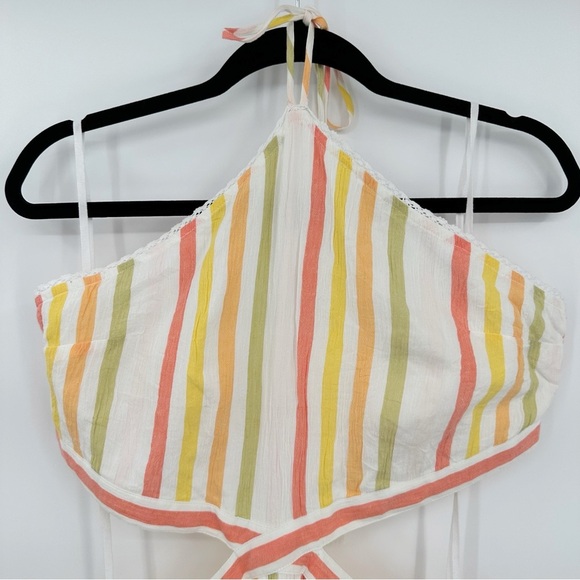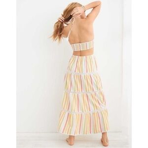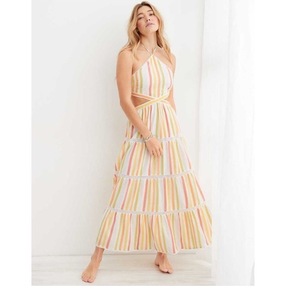 Aerie Striped Cut Out Halter Maxi Dress Pastel Size XL NWT